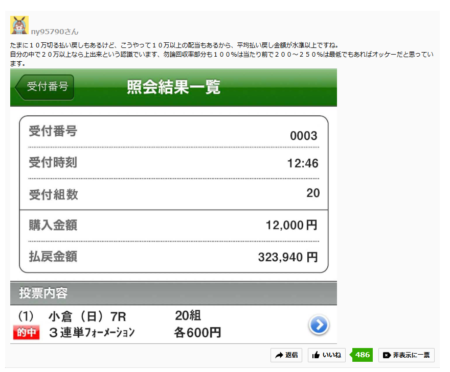 ny95790さんの口コミ、開幕週の小倉を完全攻略に導いた馬券術を大公開!