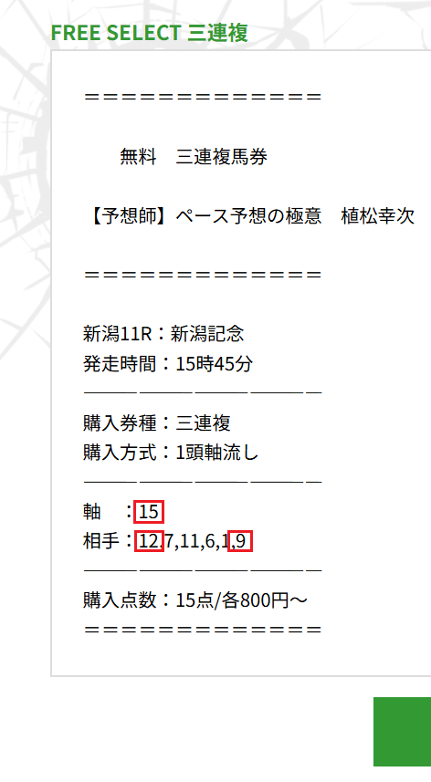 【無料情報】新潟記念(G3)完全勝利!
