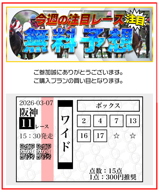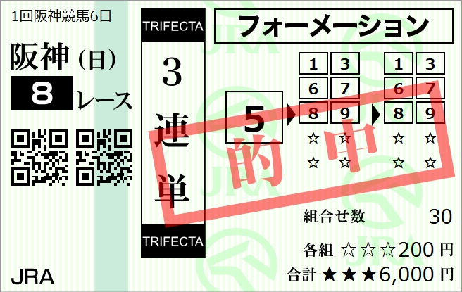 2月末にオススメされてから利用開始しました、まじまじ見るようになったのは3月1日の無料予想からです。 まずは初週となる1日目も当たり、そして2週目の8日に無料予想を利用。 阪神8Rドンピシャでしたねしかも買い目6点とか点数絞って最高です! 今週の結果は6万5600円の的中でした、3週目もリピート確定ですね。