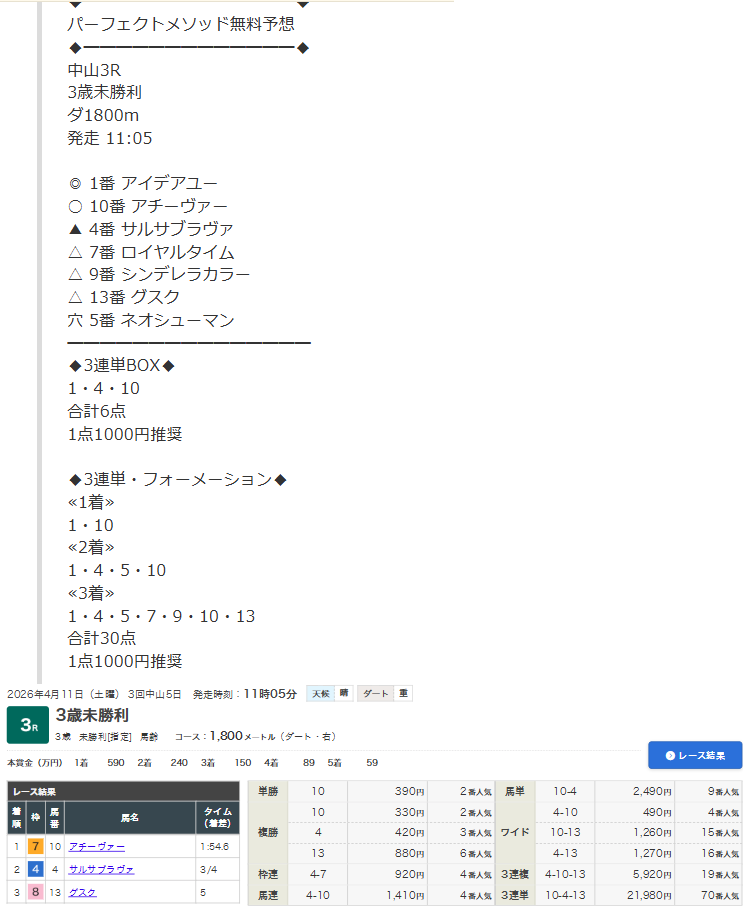 うっひょー! 先週の平日紹介されて初利用だったけど万馬券大当たり! しかも有料情報じゃなくて無料情報!!!! 推奨通り1点千円で馬券買ってたから21万9800円払戻し! 桜花賞も獲れたしこの流れはここ使えば皐月も獲れるっしょ!